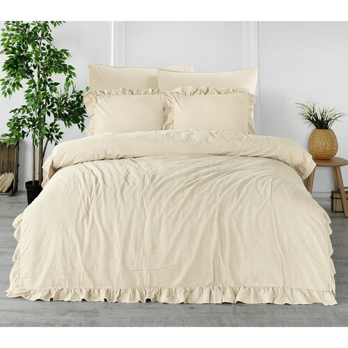 Хлопковое постельное белье с рюшами Stonewash Karna (кремовый), Евро (наволочки 50х70 и 70х70)