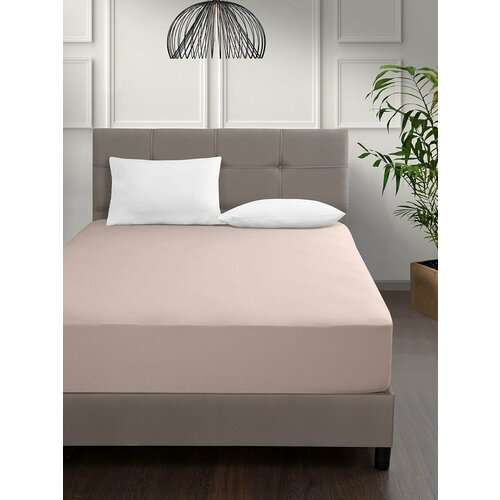 Простынь сатин "KARNA" на резинке LOFT; Капучино; Размер: 160 х 200