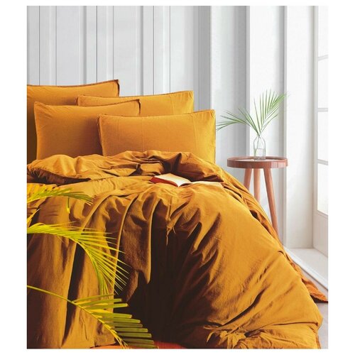 Постельное белье KARNA хлопок "STONEWASH"; Горчичный; Размер: Евро