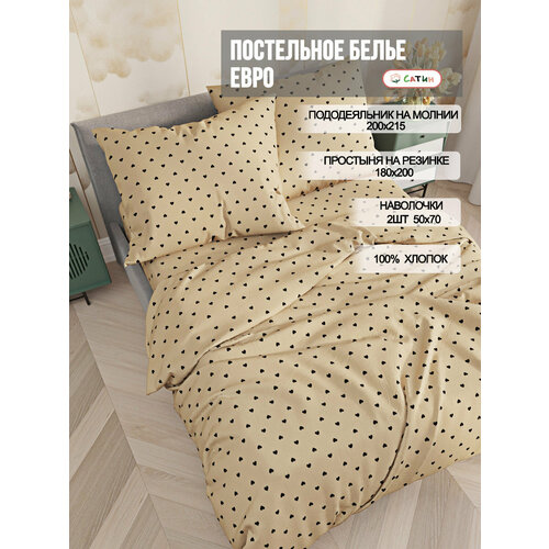 Комплект постельного белья, Полисатин, 2 спальный с евро простыней, наволочки 70x70