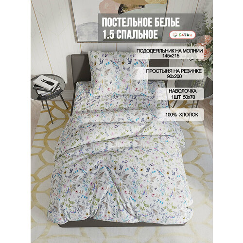 Постельное белье Milky Garden "Каролина" 1,5-сп наволочка 50х70 1шт Простынь на резинке 90х200 см Пододеяльник 145х215 см