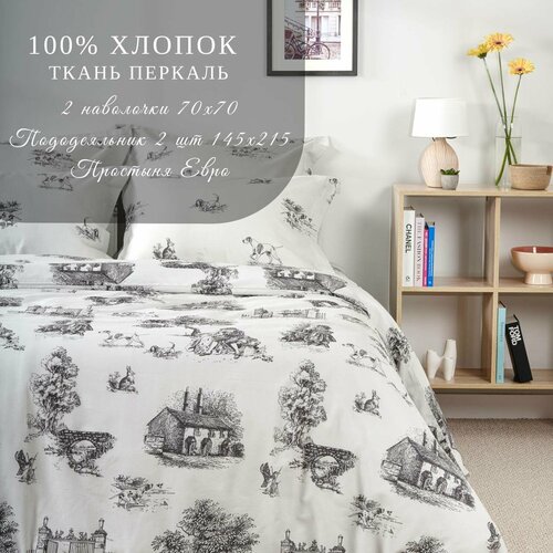 Постельное бельё/полутораспальное/комплект/простынь 150х220/пододеяльник 145x215/наволочки 70х70/перкаль/Тюильри/WINDSLOW