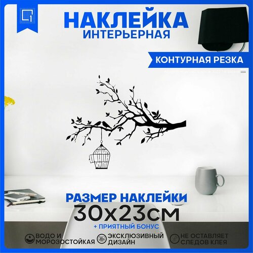 Наклейки интерьерные на стену Дерево с птицами 30х23см