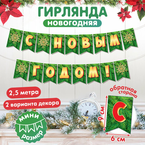 Гирлянда-растяжка бумажная на стену для украшения интерьера и фотозоны флажки "С Новым Годом"