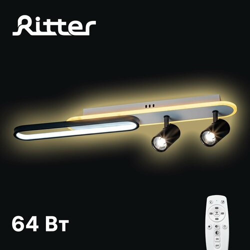 Люстра потолочная светодиодная с пультом Ritter LANTERNA, 64Вт, до 22кв. м, цвет металл/алюминий черный/белый, 51600 6