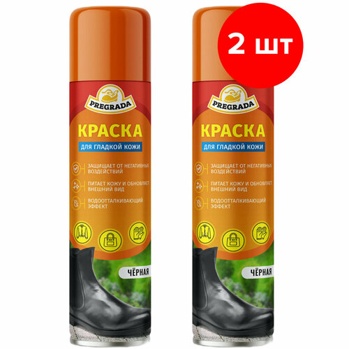 Аэрозоль краска PREGRADA для гладкой кожи с водоотталкивающим эффектом черная, 2х250 мл (500 мл)