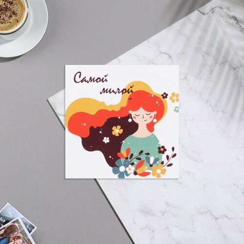 Мини-открытка "Самой милой!" девушка, воолосы, 7х7 см