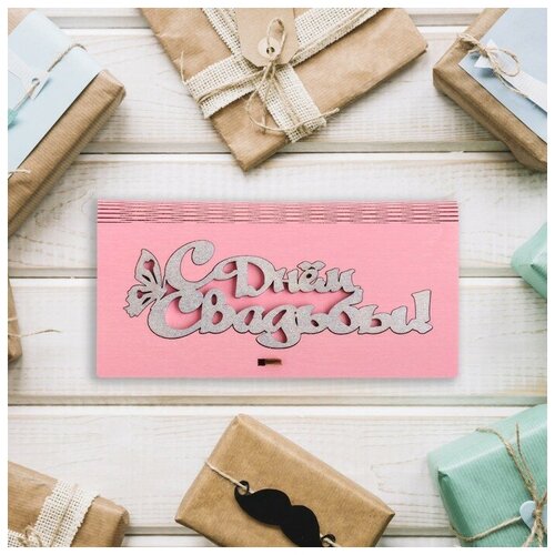 Конверт деревянный "С Днём Свадьбы!" розовый, 17 х 8,5 х 2 см