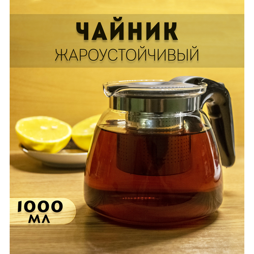 Чайник заварочный стеклянный 1000 мл 1 л / Заварник с ситом