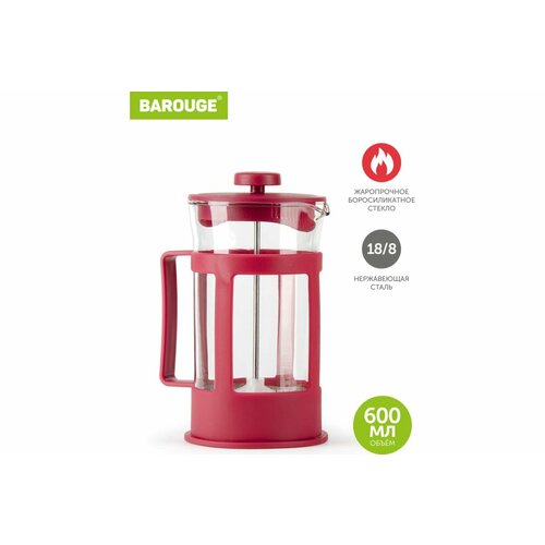 Френч-пресс BAROUGE BF-771/36 Market Price, стеклянный, 600 мл BF-771 600 мл/красный
