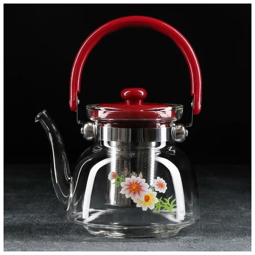 Чайник стеклянный заварочный с металлическим ситом «Цветочная фантазия», 850 мл