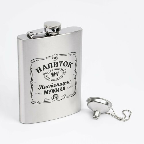 Фляжка, 240 мл, 8 oz "Напиток настоящего мужика", воронка