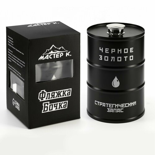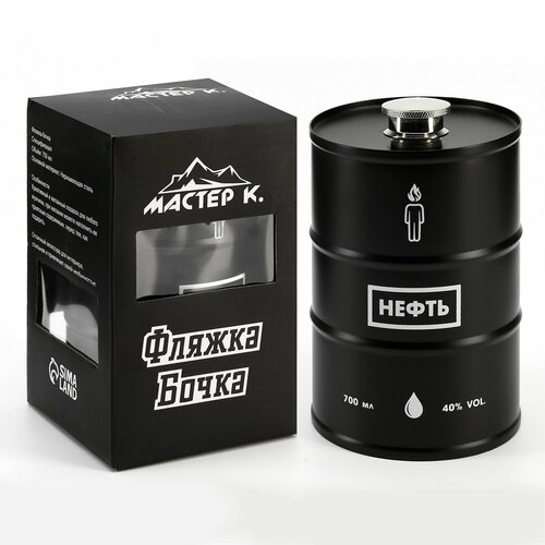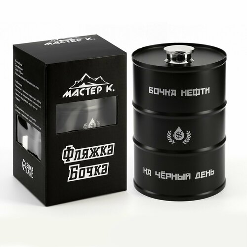 Фляжка, 750 мл "Бочка нефти", 9.2 х 14.5 см, черная