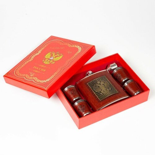 Подарочный набор 6 в 1 "Герб": фляжка 540 мл, 4 стопки по 75 мл, воронка
