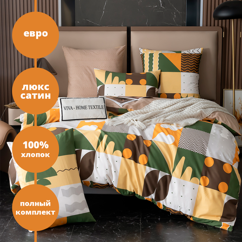 Комплект постельного белья, Делюкс Сатин, Евро, 4 наволочки, L601