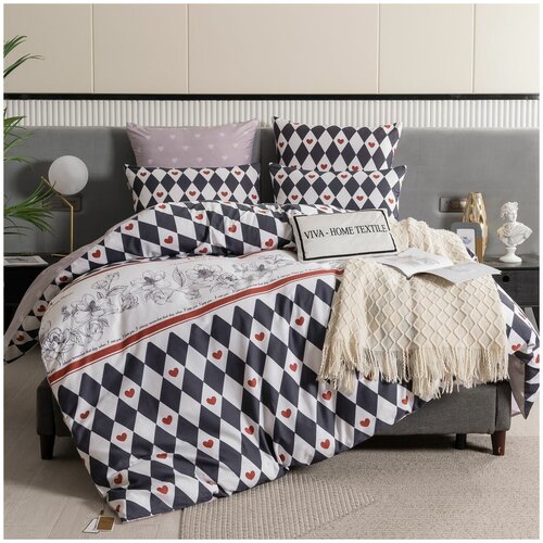 Комплект постельного белья Люкс-Сатин на резинке AR292 (2 спальный / 50-70 2 шт / 140*200*25 / 180*215 см 1 шт)