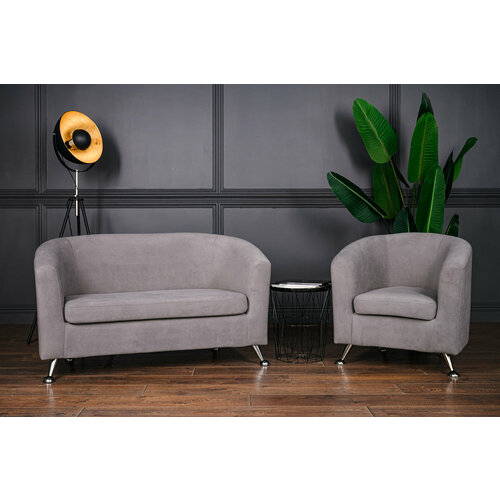 Комплект мягкой мебели 602, прямой диван и кресло для отдыха, офиса и салона, материал износостойкий велюр