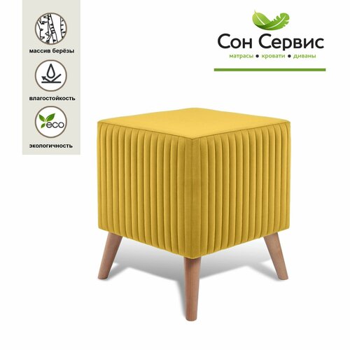Пуфик в прихожую на ножках квадратный 39х39х44 см велюр желтый Сон-Сервис