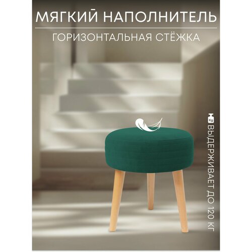 Круглый пуф выполнен из мебельного ДСП, выдерживает большие нагрузки. Ножки выполнены из массива Березы высотой 150мм. Обивка выполнена из Велюра, не впитывает влагу, антивандальная, не деформируется в процессе эксплуатации. Пуф украшение современного интерьера. Этот элемент в доме наполняет пространство уютом. Он создает не только красоту и стиль, но является очень удобным дополнением мебели. Приятно сесть в любимое кресло и расслабить на круглом пуфике уставшие ноги. На пуфике в гостиной можно отдыхать у камина или использовать его как банкетку для пианино. Зона отдыха с пуфиком на балконе или удобный пуф в гардеробную комнату. Пуфы-банкетки доступны для всех. Особенно они нравятся детям. Существует много модельных и стилевых решений для детской комнаты, спальни и прихожей. Варианты моделей: круглые банкетки в прихожей, прямоугольные пуфики с ящиком или обувницы с сиденьем. Многие любят пуфы за универсальность.