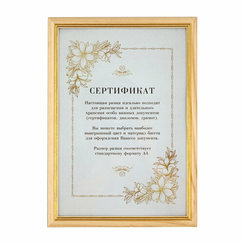 Деревянная фоторамка, рамка для фотографии 21х30, 21х29,7 (a4), сертификат, сосна GF 5948