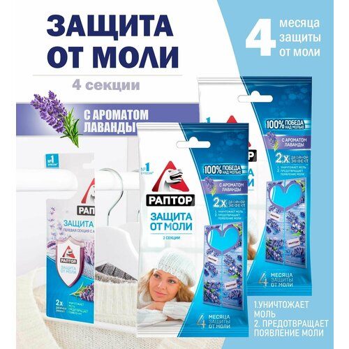 Средство от моли раптор с ароматом лаванды, 2 уп. по 2 секции / защита от моли