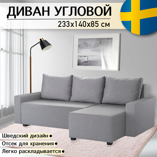 Диван "Росмебель Лофт", еврокнижка, модульный, размер 2,45х1х0,95, светло-серый
