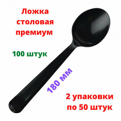 Ложки 180 мм Премиум 2 упаковки по 50 штук черные