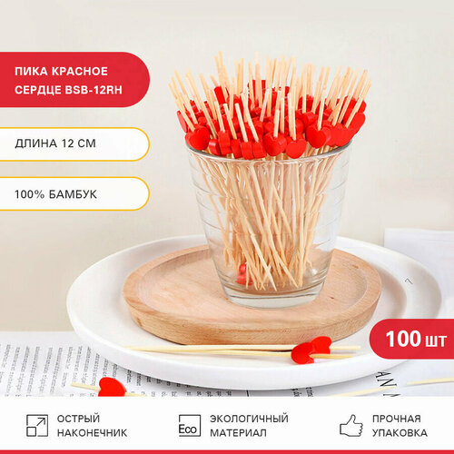 Пика красное сердце Viatto BSB-12RH, бамбук, 100 шт