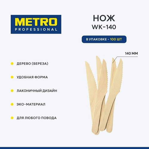 Нож VIATTO WK-140, одноразовый, деревянный, 14 см, 100 шт.