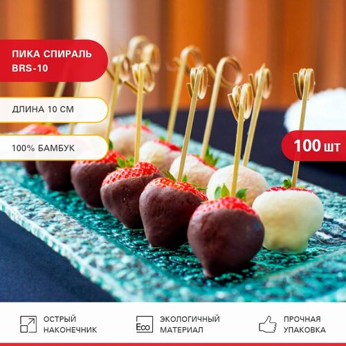 Пика для закусок спираль VIATTO BRS-10, шпажки, набор для канапе, бамбук, 100 мм, 100 шт.