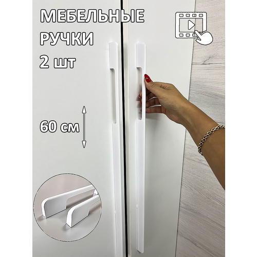 Мебельная ручка дизайнерская, универсальная для кухни, для шкафа, для комода №160-576 (600) мм белая (2 шт)