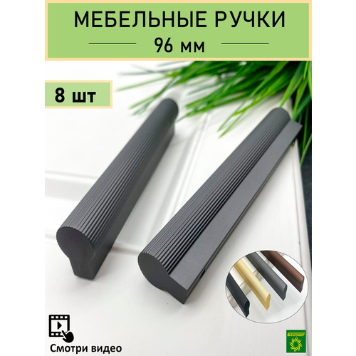 Ручки мебельные современные для шкафа на кухню 96 мм графит 8 шт