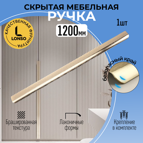 Ручка мебельная торцевая скрытая накладная шлифованное золото 1000 мм
