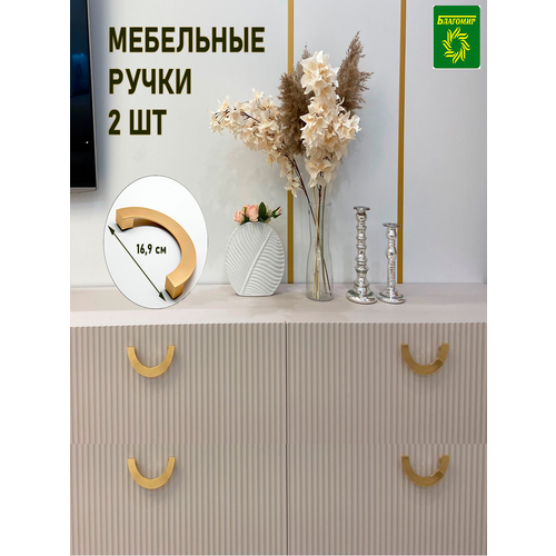 Мебельные ручки полукруг, дизайнерские для шкафа, тумбы и кухни (169 мм) матовое золото, 4 шт