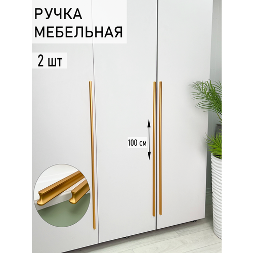 Ручка мебельная дизайнерская для шкафа, матовое золото (100см) 2 шт.