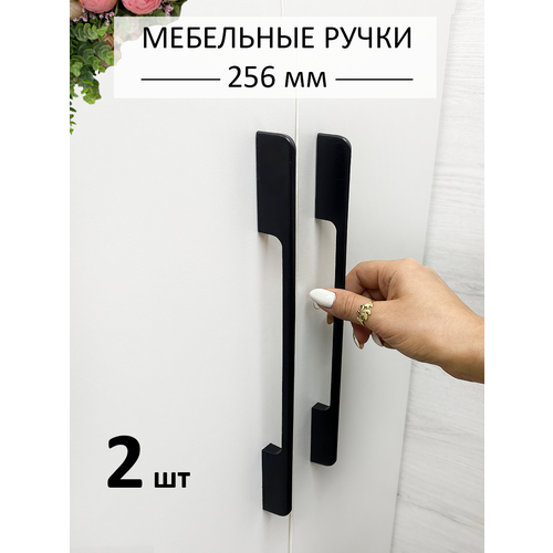 Ручка для мебели черная на кухню шкаф комод (256мм), 2 шт