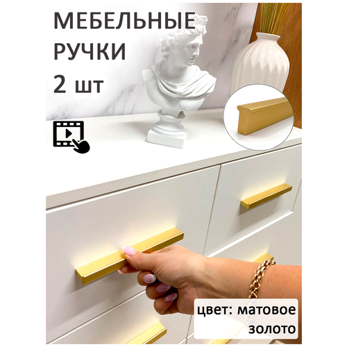 Мебельная ручка дизайнерская, для шкафа, для кухни, матовое золото №161-256 (300) мм - 2 шт