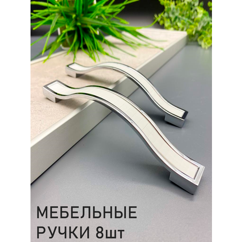 Ручка мебельная для кухни металлическая хром + белый №52 - 8 шт.