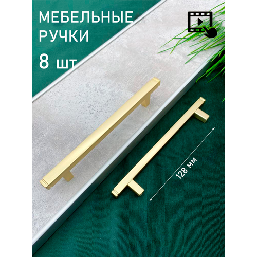 Ручка мебельная для шкафа металлическая на кухню золото №177 - 8шт.