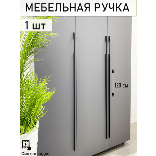Мебельная ручка длинная матовая черная металлическая для шкафа 120см (1200 мм) 1шт