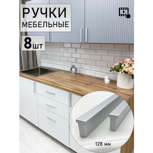 Ручка мебельная для кухни мебели шкафа, матовый хром - 8 шт