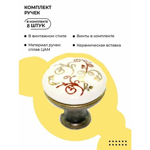 Ручка мебельная кнопка BRANTE 32430 орнамент, комплект 8 шт, ручка для шкафов, ящиков, комодов