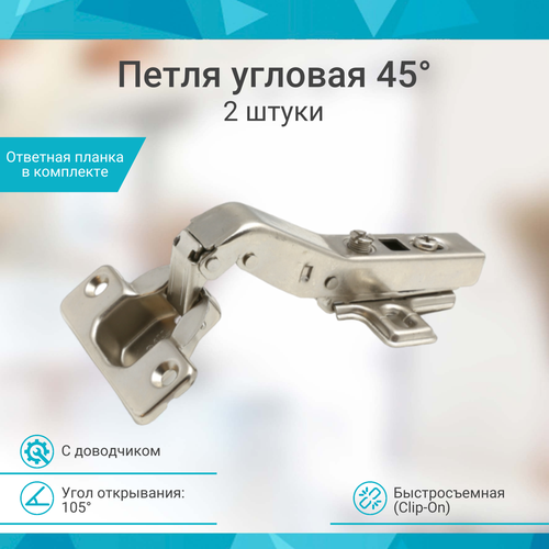 Петля мебельная угловая 45 быстросъемная с доводчиком 2 штуки