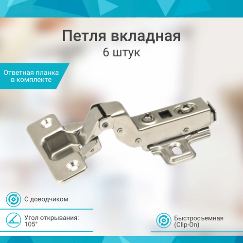 Петля мебельная вкладная с доводчиком, быстросъемная Clip-on 6 штук