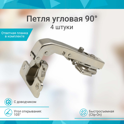 Петля мебельная угловая 90 быстросъемная с доводчиком 4 штуки