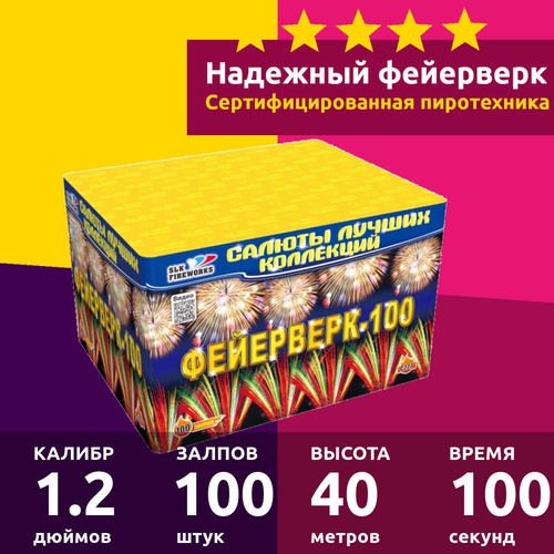 Батарея салютов Русская Пиротехника Звезды Москвы РС8830, 100 залпов, синий/желтый 38.5 см 32.5 см