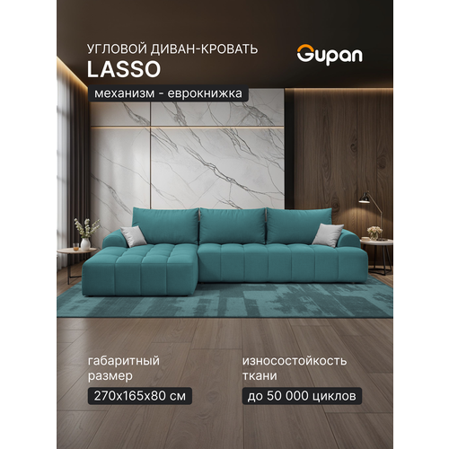 Диван угловой Gupan Lasso Велюр Lagoon, раскладной, механизм еврокнижка, беспружинный, с ящиком для белья, в гостиную
