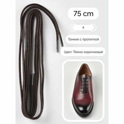 Шнурки SAPHIR круглые, тонкие, с пропиткой, цвет тёмно-коричневый, 75см.