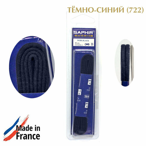 SAPHIR Шнурки 90 см. круглые тонкие 2,5 мм, цветные. (тёмно-синий (722))