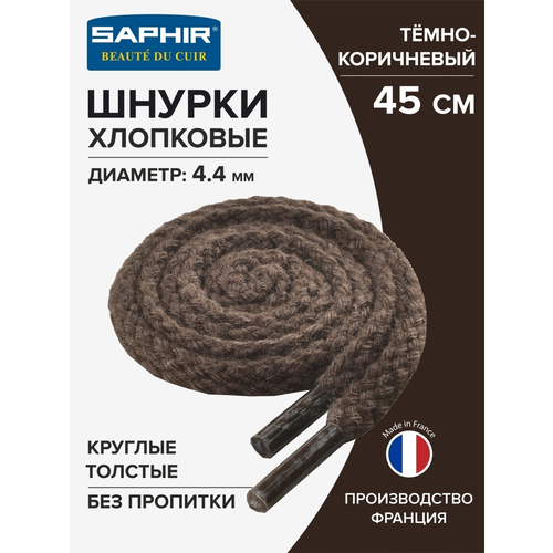Шнурки SAPHIR круглые, тонкие, с пропиткой, цвет тёмно-коричневый, 75см.